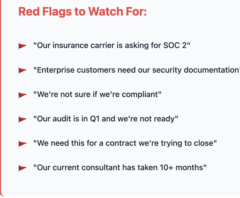 If they're a mid-market company (200-2K employees) who needs compliance certification and is frustrated with slow traditional timelines, they're likely a great fit. Look for companies facing SOC 2, ISO 27001, HIPAA, or PCI DSS requirements.